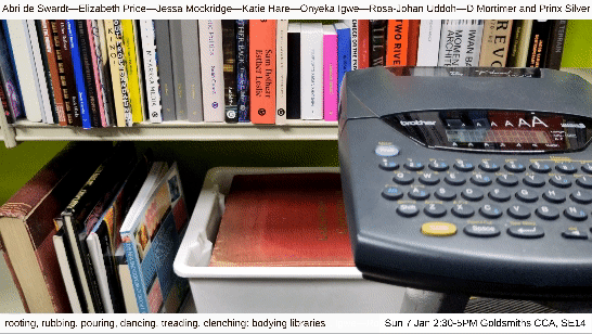 rooting, rubbing, pouring, dancing, treading, clenching: bodying libraries